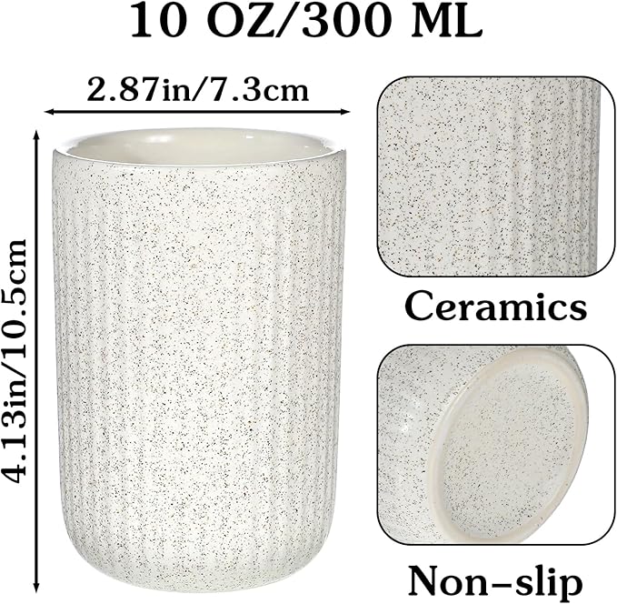 - Premium Ceramic Material: Crafted from high-temperature fired ceramic, these toothbrush holders for bathrooms are more durable and safer than plastic alternatives. The ceramic toothbrush holder set is designed to withstand hotter water without releasing harmful substances, making it a safe choice for your family's health.