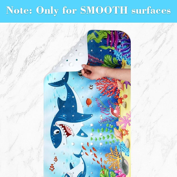 Bath Mat for Tub Non Slip, Machine Washable Anti-Slip Cartoon Baby Bathtub Shower Mat with Drain Holes and Suction Cups for Toddler & Kids, 40in x 16in, Sharks