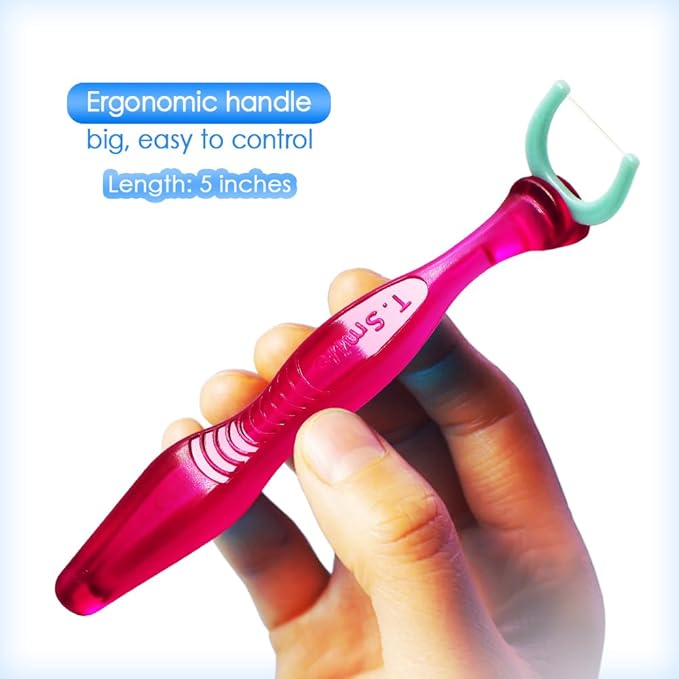 T.Smile NoFuss Dental Flosser Kit, 5-inch Long Handle & Refill Heads, Extra-Strength Floss for Comfortable Clean, Fluoride Free (1 Red Handle + 100 Refills)