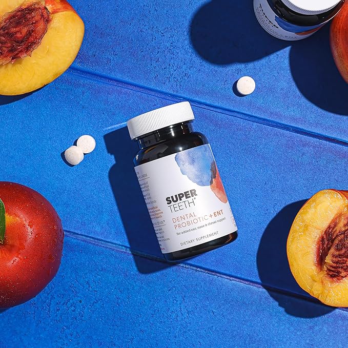 Super Teeth ENT Probiotic | BLIS K12 & M18 Probiotics | for Oral Microbiome Health & Sinus, Throat & Immune Support | 60 Natural Peach Flavored Chewable Tablets | Dental Probiotic