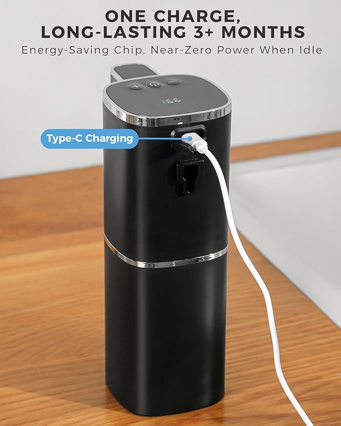 - 【IPX5 All-Environment Ready】Defends against splashes and humidity in kitchens and bathrooms. It's also a perfect touchless soap dispenser for public places like offices, hospitals, hotels, schools and restaurants.