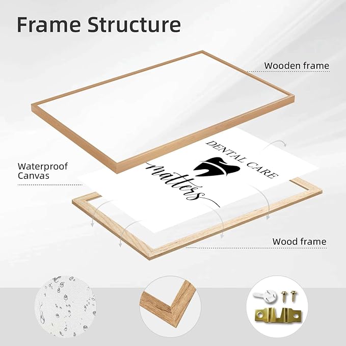 Framed Dental Care Matters Poster Canvas Print Art, Minimalist Aesthetic Wall Art Painting, Trendy Pictures, Wall Decoration for Bathroom, Office, Dorm Room Home Decor (Wood Framed,8L"X12W")