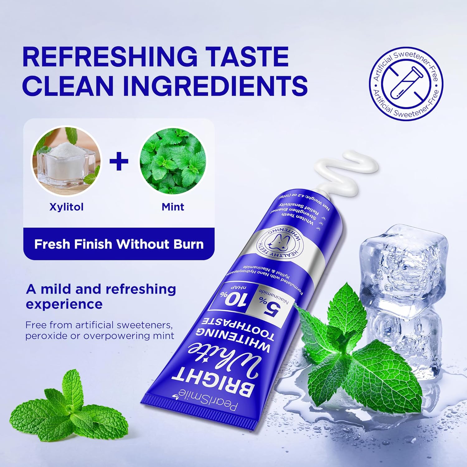 - ✅ 2. Contains 5% Niacinamide for Gentle Brightening — Niacinamide, a form of Vitamin B3 widely used in skincare, is now applied to oral care. It helps remove surface stains caused by daily factors such as coffee, tea, red wine, and smoking. This improves the smoothness, gloss, and reflectivity of enamel — enhancing the overall brightness of your smile.