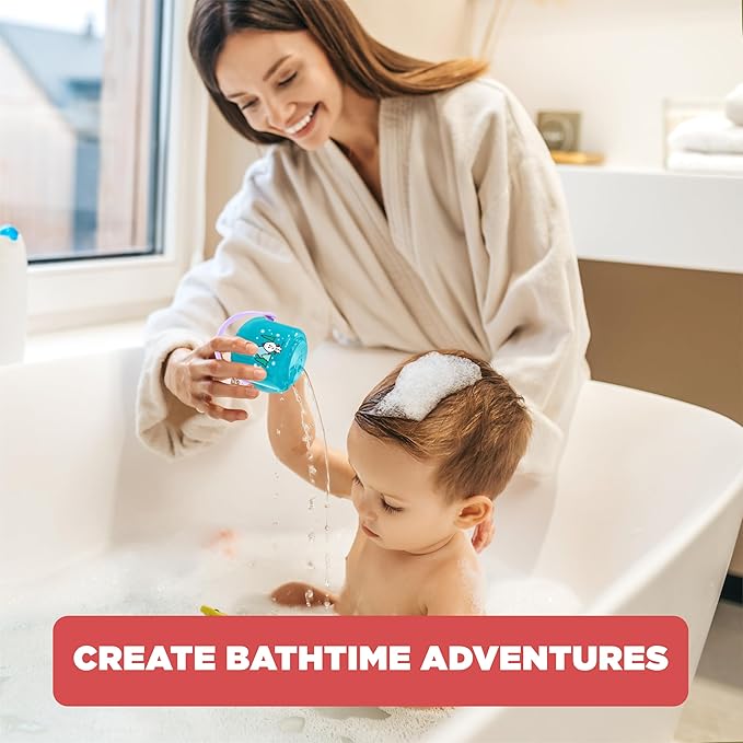 - NCLUDES: 5 Finger Puppets, 2 Stacking Rinse Cups, 2 Cube Squirters, 1 Foam Pump Squirter and 1 mesh storage bag