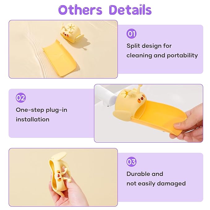 - Easy to Clean: The toddler faucet extender's detachable design is easy to remove for cleaning, has no dirt dead spots and is not prone to mould. Dishwasher safe.