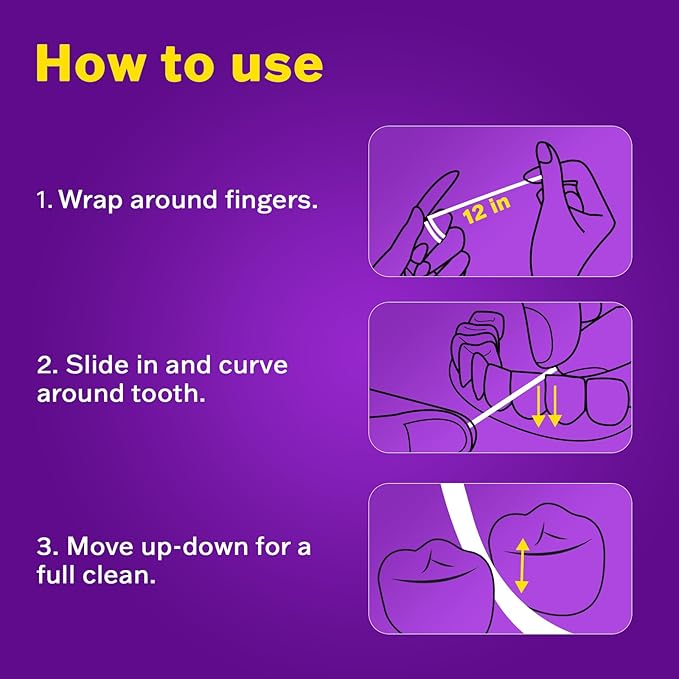 - Smooth-Glide, Shred-Resistant Fiber – Lightly waxed for control and comfort, this ribbon-style floss glides smoothly between teeth without snapping or fraying, even in areas that usually shred regular floss.