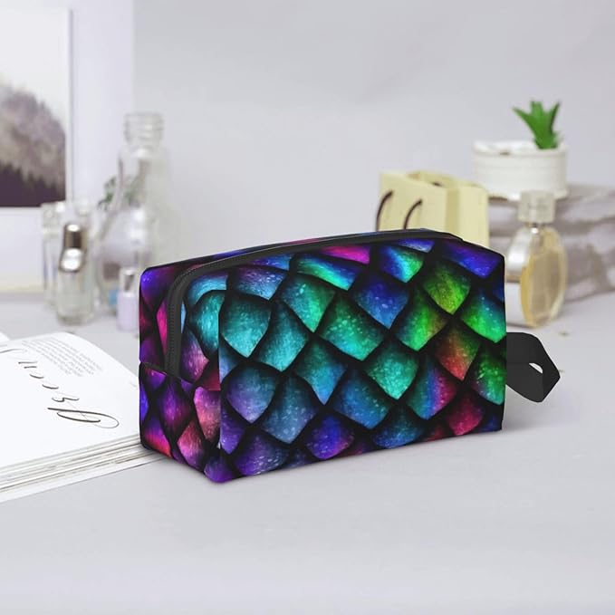 Colorful Dragon Scale Toiletry Bag for Women Men Portable Travel Wash Bag Waterproof Gym Shaving Toiletries Cosmetic Organizer Bag, Shower Bathroom Toiletries Accessories Makeup Bag with Handle