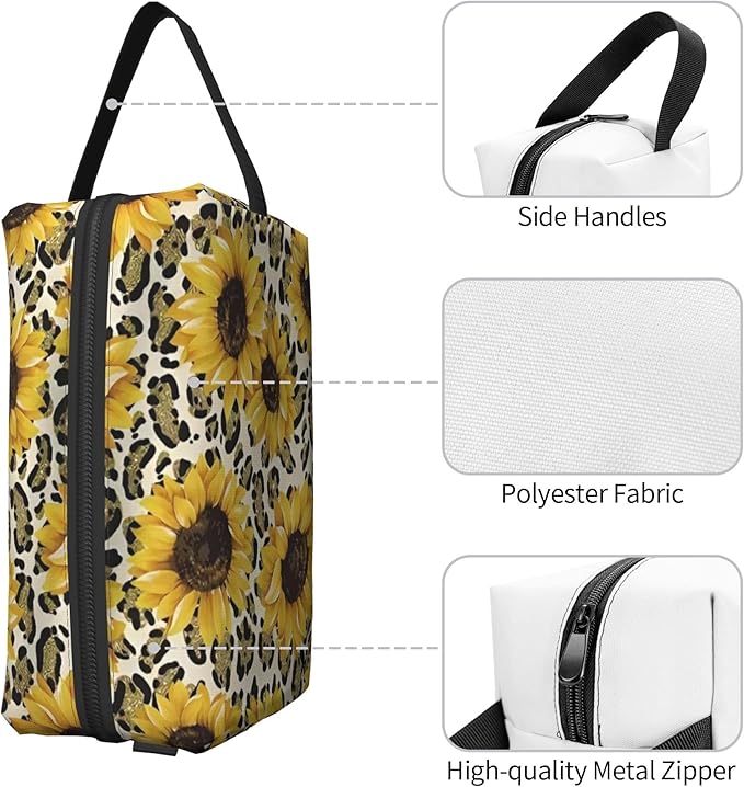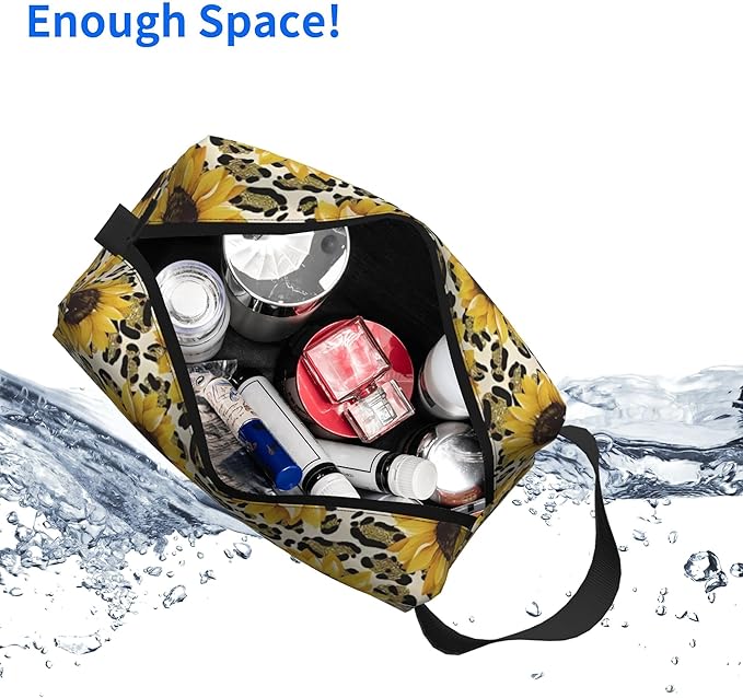 Sunflower Leopard Toiletry Bag for Women Men Portable Travel Wash Bag Waterproof Gym Shaving Toiletries Cosmetic Organizer Bag, Shower Bathroom Toiletries Accessories Makeup Bag with Handle