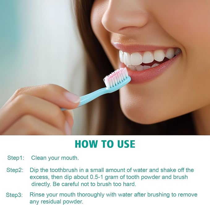 - Choose from three targeted formulas to meet comprehensive oral care needs: Probiotic Tooth Powder: Focuses on balancing the oral microbiome, maintaining stable oral microecology, and improving the oral environment at the source. Baking Soda Tooth Powder: Concentrates on deep cleaning, naturally absorbing surface stains and residue in tooth gaps, and restoring teeth’s clean texture. Amino Acid Tooth Powder: Specializes in strengthening tooth enamel, while soothing red and sensitive gums, and providing gentle protection for oral mucosa.