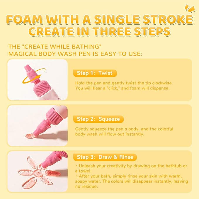 - Fun and Creative Bath Time Activity: Includes vibrant, washable bath crayons that allow kids to draw, color, and express their creativity safely on tiles, walls, and bathtub surfaces during playtime or bath