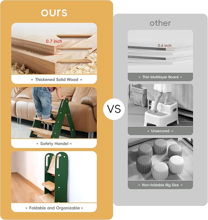 - Montessori-Inspired Design Step Stool: This toddler foldable step stool helps your little one reach the bathroom sink, kitchen counter, or bookshelves safely—perfect as a toddler standing tower, kids step stool, or potty training seat stool. Boosts confidence through independent learning and participation