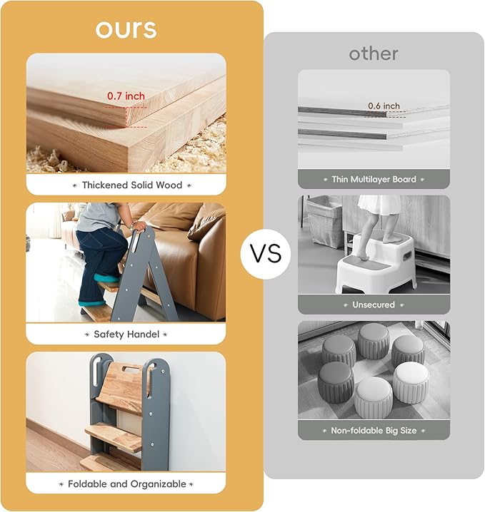 - Montessori-Inspired Design Step Stool: This toddler foldable step stool helps your little one reach the bathroom sink, kitchen counter, or bookshelves safely—perfect as a toddler standing tower, kids step stool, or potty training seat stool. Boosts confidence through independent learning and participation