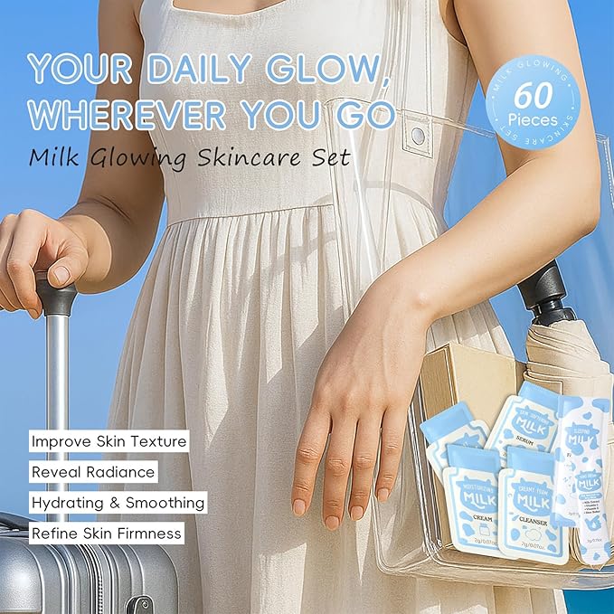 60 PCS Travel Milk Skincare for Kids 10-12, Kids Skin Care Set for Girls Ages 8-12, Preteen & Teen Skin Care Kit with Milk Extract, Christmas Gifts for Teenage Girls, Smooth Hydrating