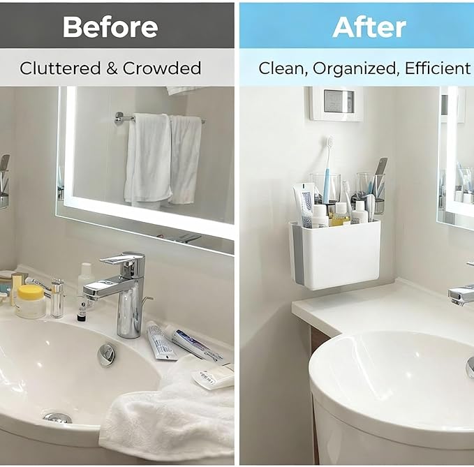 - 🚿 Keeps Your Counter Neat & Organized Holds toothbrushes, toothpaste, razors, or small skincare tubes upright and tidy. A simple way to keep your bathroom area fresh and clutter-free during travel. Also fits glasses or a small phone at the bedside, so your nightstand stays neat on board.