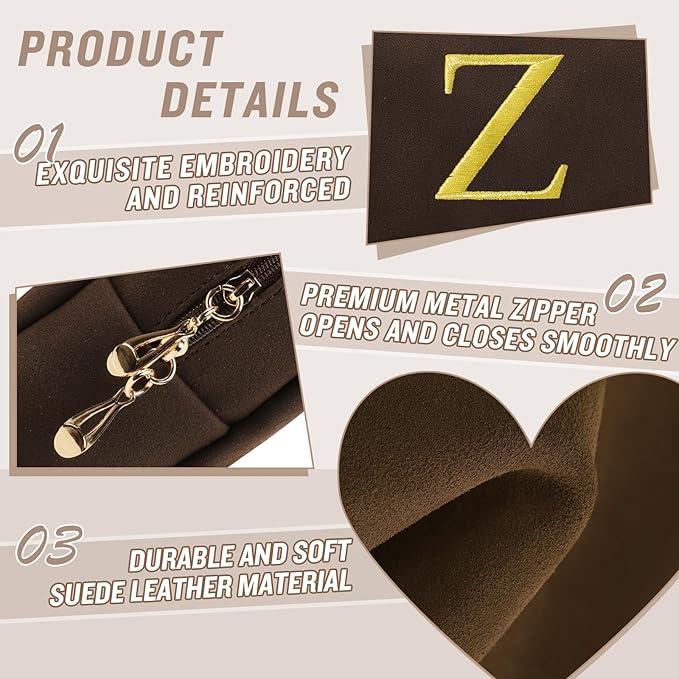 Personalized Initial Makeup Bag,Preppy Suede Cosmetic Bag for Teen Girls,Small Monogram Travel Toiletry Bag With Gold Embroidered Letter,Trendy Stuff Custom Christmas Gift for Women(Coffee-Z)