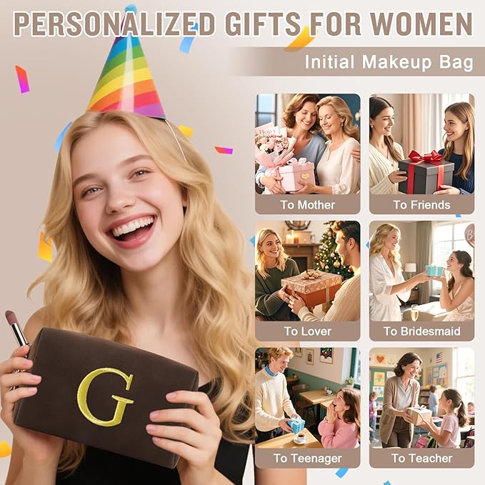 - 🎁【 Personalized Gift 】This personalized monogrammed makeup bag has her own gold initials sewn on the front. Perfect as a gift for daughters, granddaughters, girlfriends, and best friends on special occasions such as Valentine's Day, Christmas, or anniversaries or birthdays. No girl would refuse such a beautiful bag!
