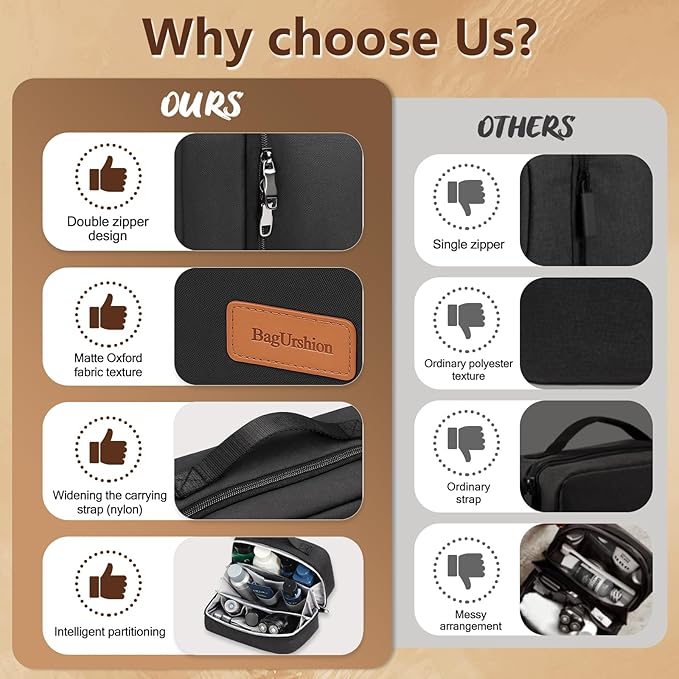 - ✦ SMART ACCORDION FLEX-TECH: Engineered for travelers, this men's toiletry bag for traveling features a spacious main compartment with accordion design. The flexible storage automatically adjusts to item sizes. Dividers with elastic pockets and drawstrings secure bottles upright, keeping your mens travel bag toiletry kit neatly organized