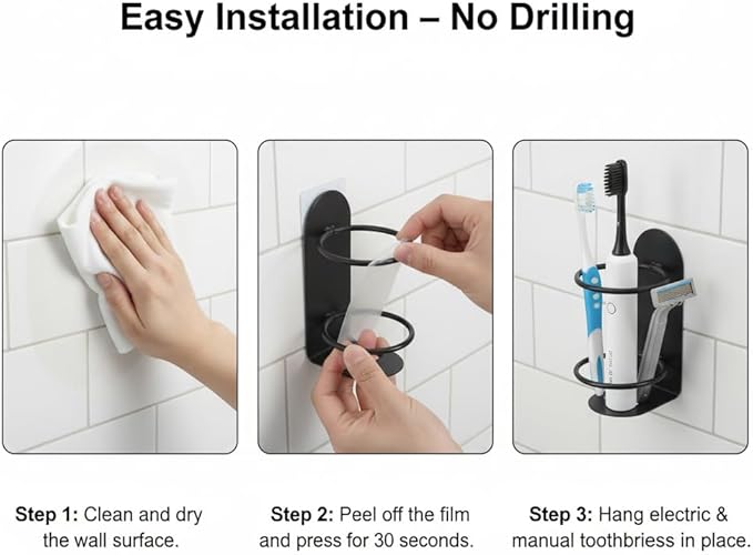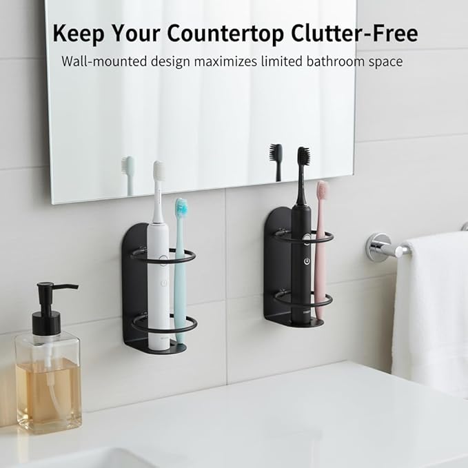 - [Secure Hold] Features strong adhesive backing and stable design to securely hold various sizes of electric toothbrushes without slipping.