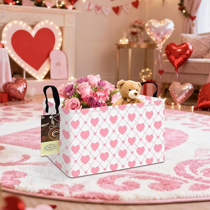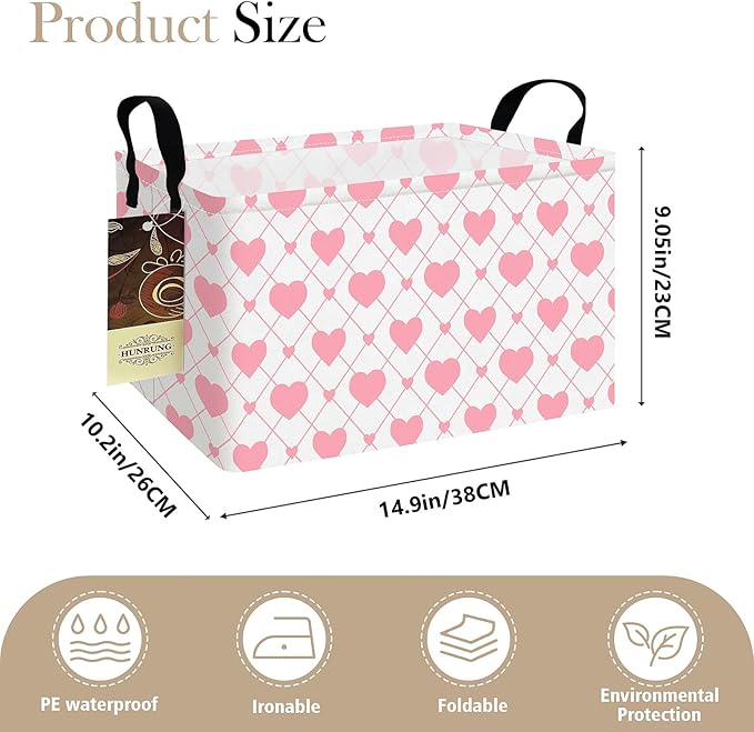 HUNRUNG Rectangle Storage Basket Cute Canvas Organizer Bin for Pet/Children Toys, Books, Clothes Perfect for Rooms/Playroom(REC-Heart)