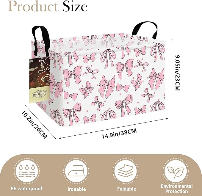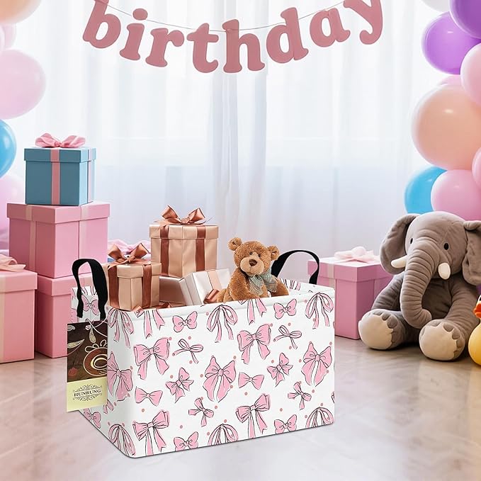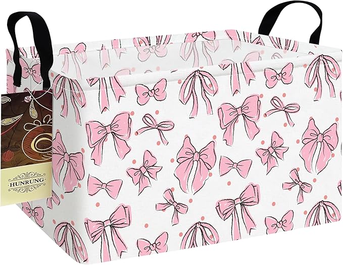 HUNRUNG Rectangle Storage Basket Cute Canvas Organizer Bin for Pet/Children Toys, Books, Clothes Perfect for Rooms/Playroom(REC-Pink Bow)