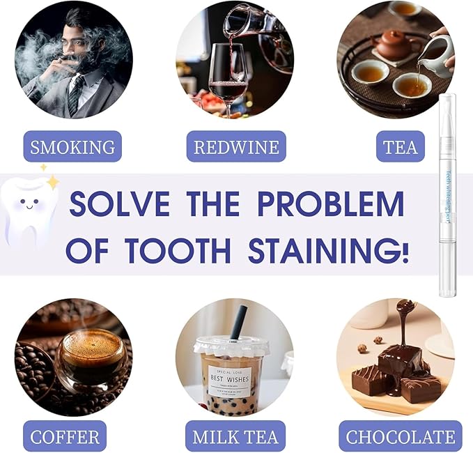 - 【Remove Years of Stains】Our professional teeth whitening pen can effectively and quickly remove years of stains caused by coffee, tea, wine, smoking, soda and more