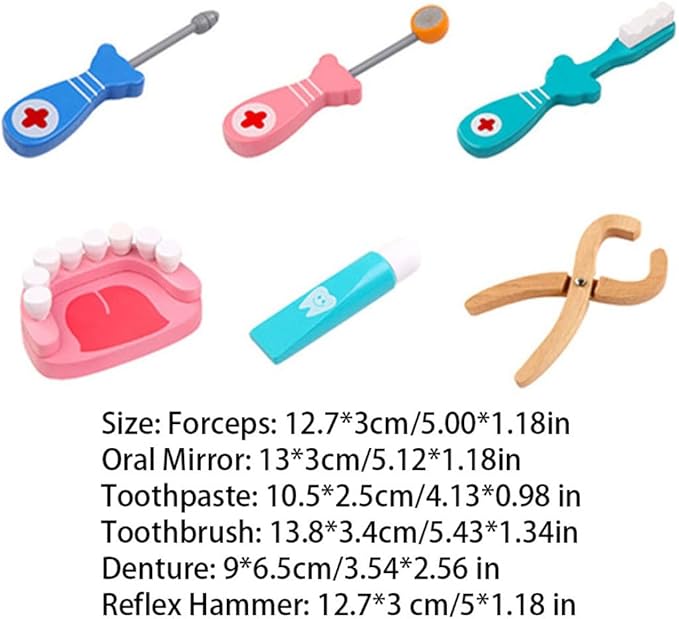 - MATERIAL: This teeth doctor toy set is made of environmental wood, no need to worry about the safety. Every corner and edge is round and soft, will not hurt kids' hands.