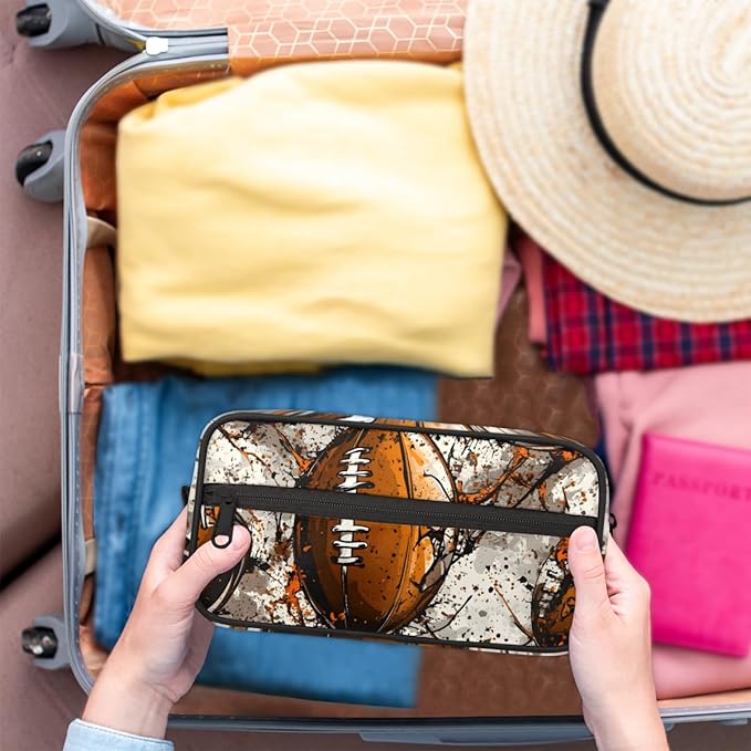 Rugby Football Sport Boys Travel Toiletry Bag Waterproof Wash Bag Shower Shaving Bag Cosmetic Organizer Makeup Bag Portable Toiletries Accessories for Women Men