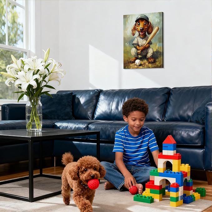 YOUHONG Animal Posters Animal Pictures Wall Decor Dog Wall Art with Built-in Wooden Frame - Sports Poster Dog Pictures for Bedroom & Living Room Decor Easy Hanging (12x15.7 Inches)